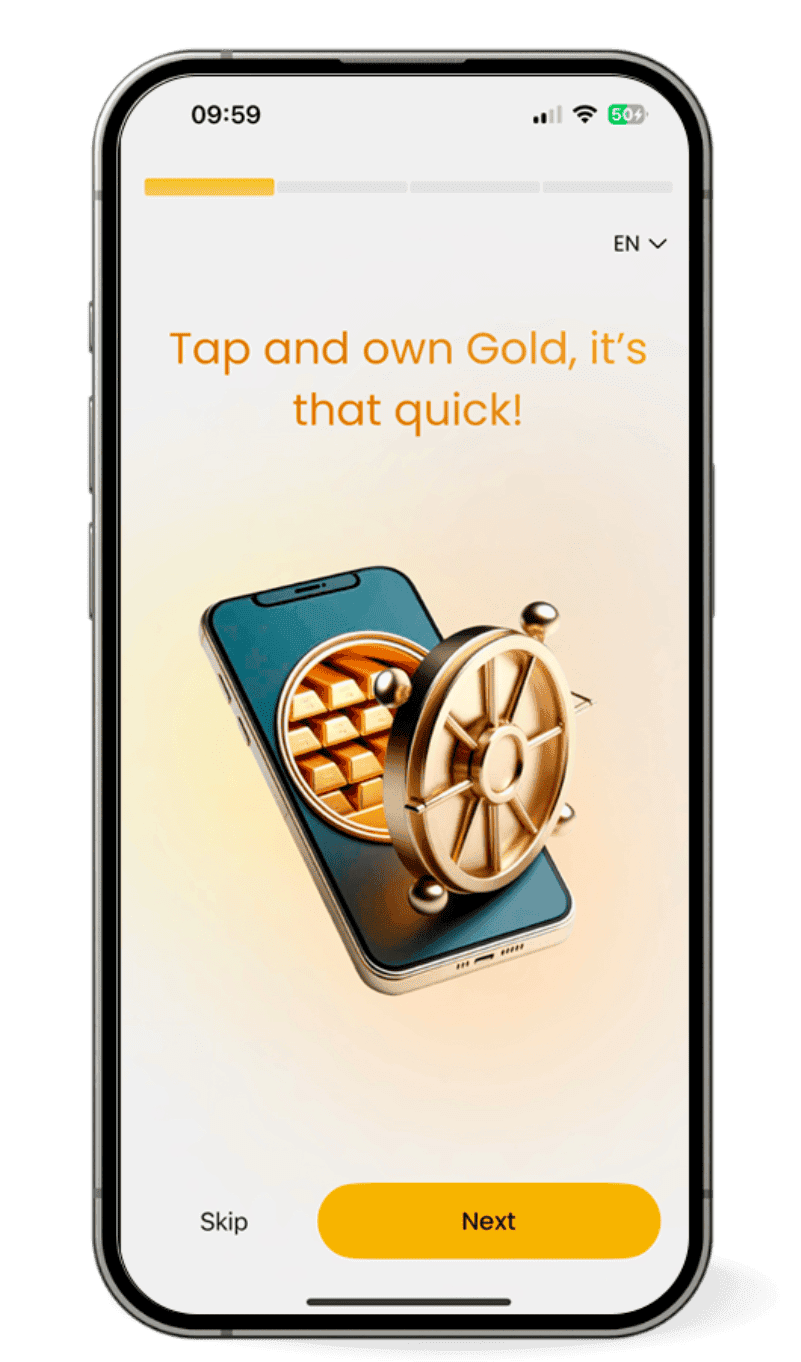 1. Convert: digital money is instantly converted into physical gold.